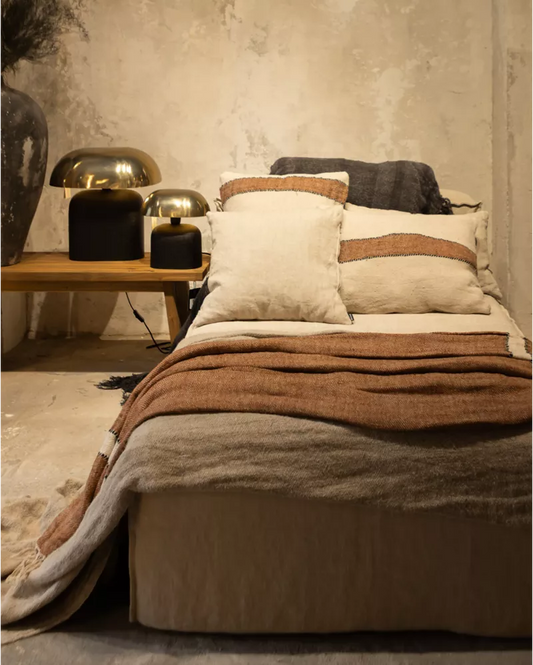 РазпродажбаЛЕН ПЛЕД МАСЛИНОВО КАФЯВ С ЧЕРНИ ШЕВОВЕ