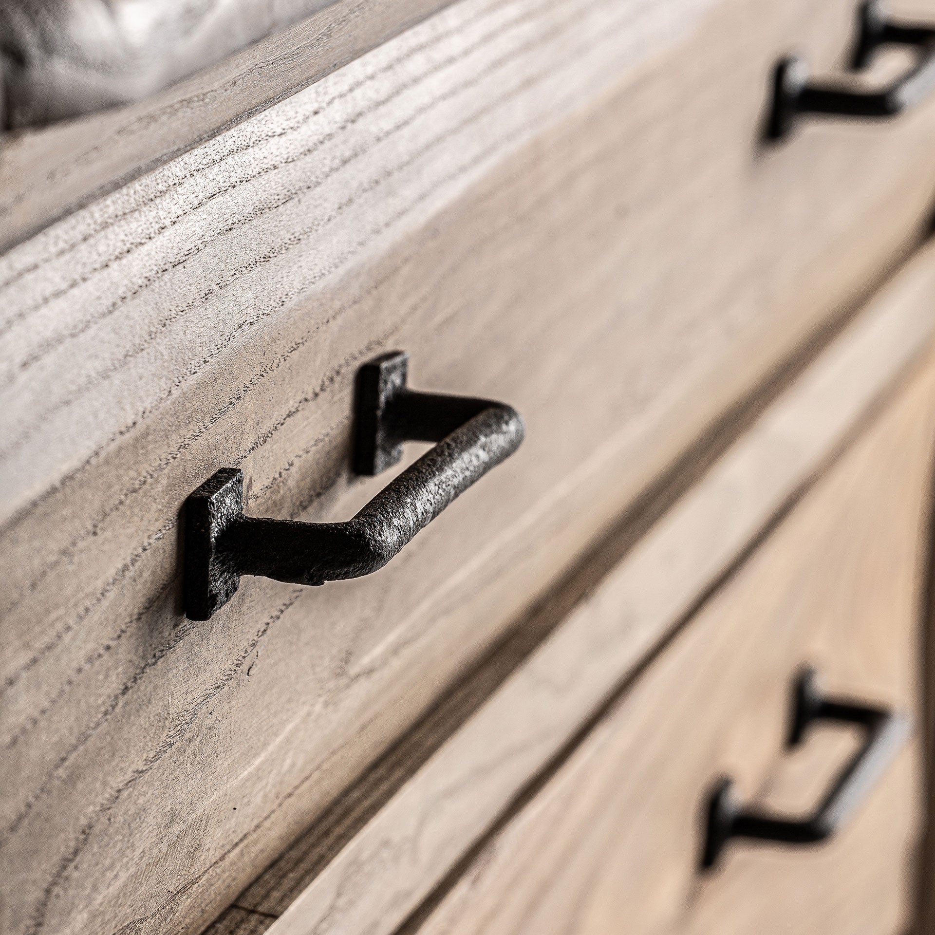 Изработен от богато кафяво брястово дърво , скринът Brixton въплъщава колониалния чар с естествените си шарки и нежно извити ръбове. С три просторни чекмеджета с класически метални дръжки, той предлага практично място за съхранение, обгърнато от вечен дизайн. Изискана мебел, която добавя топлина и характер към всеки интериор. Скрин Brixton, стил колониал, изработен от брястово дърво в кафяво.