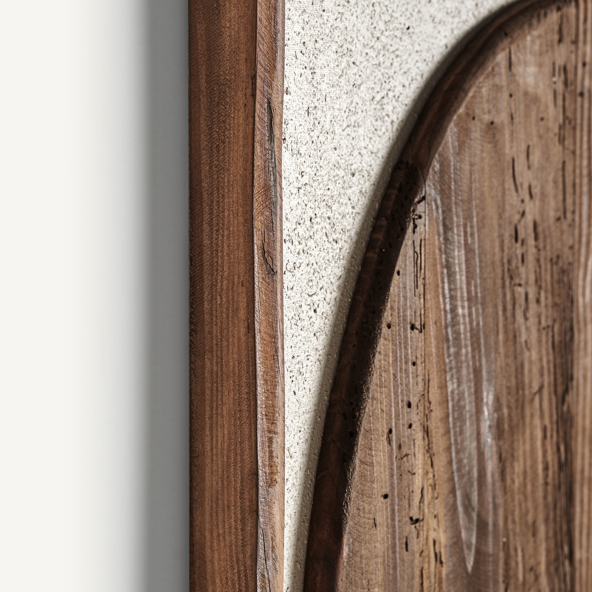Тази стенна декорация въплъщава същността на стиловете Wabi Sabi, Japandi и Boho, като безпроблемно съчетава естествени текстури с ненатрапчива елегантност. Нейният фин, органичен дизайн добавя топлина и характер към всяко пространство, подобрявайки атмосферата на дома със спокойна, балансирана естетика. Идеална за тези, които търсят изискан, но достъпен външен вид, тя допълва както минималистични, така и еклектични интериори, което я прави универсален акцент за обмислен и експертен стил на дома.