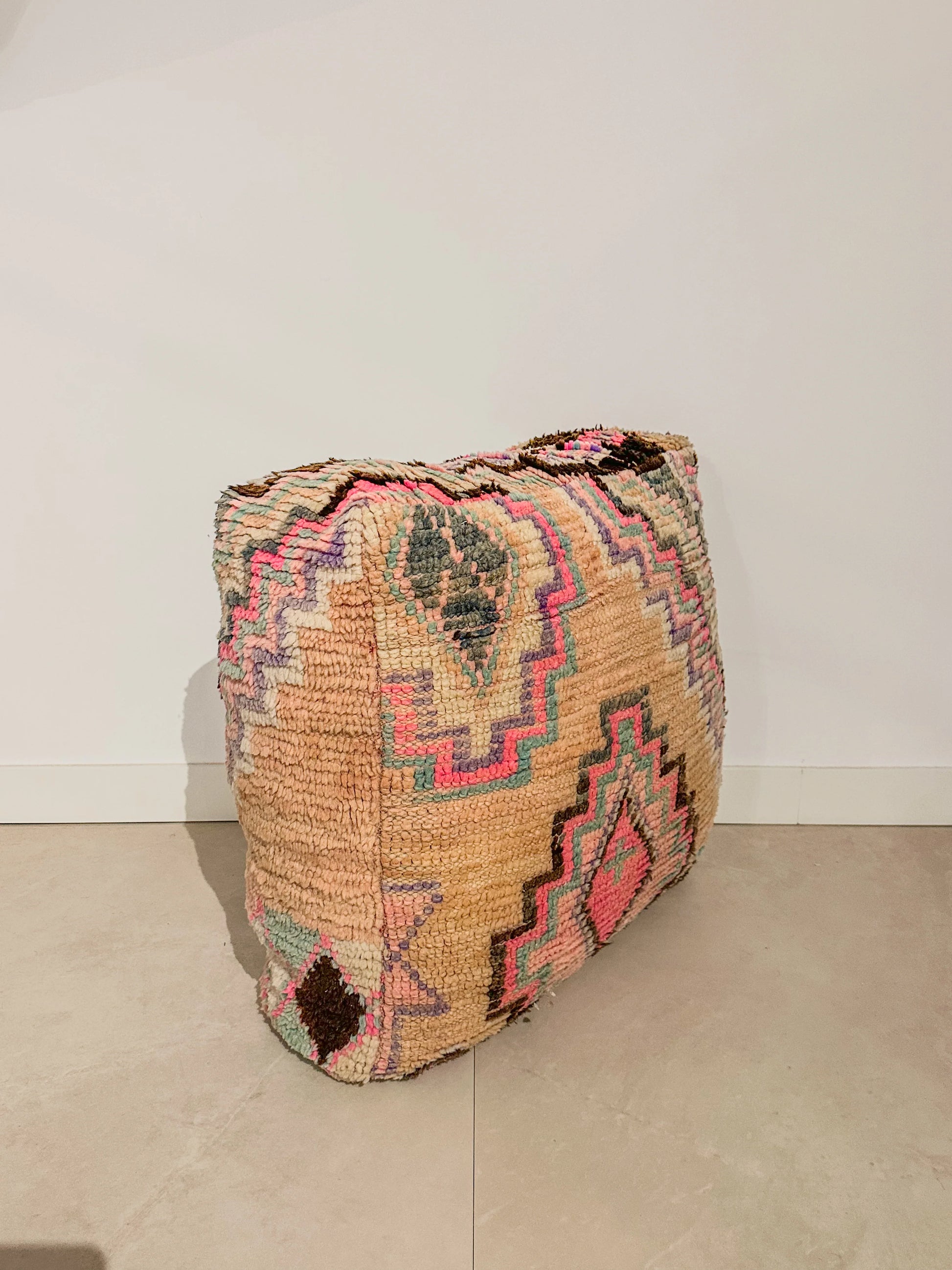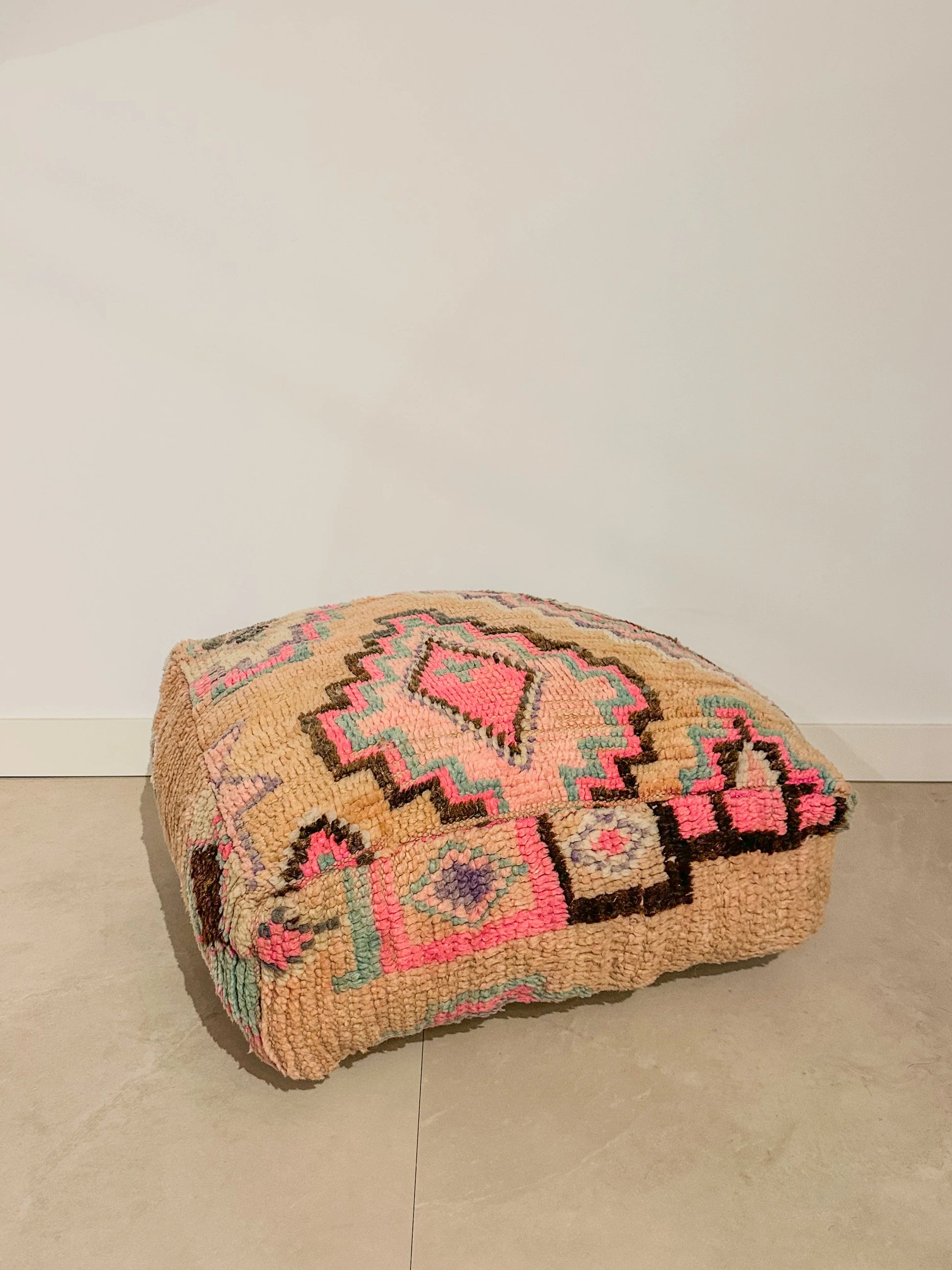 Всеки пуф е ръчно изработен от винтидж марокански килим и е уникален шедьовър! Пуфът е истинско впечатляващо произведение на изкуството, богатите цветове и характерният му външен вид го правят впечатляващ артикул, който добавя топлина и характер към всяко пространство.