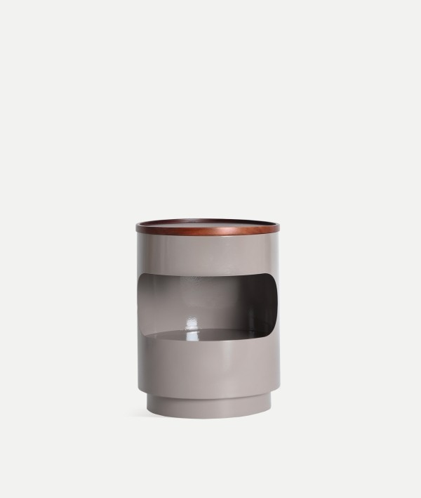 Дизайнът и функционалността се сливат в нощното шкафче Noa, с лъскава сива железна конструкция и плот от акациево дърво. Идеално за съвременни спални, които ценят благородните контрасти на материалите.