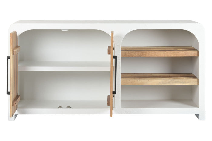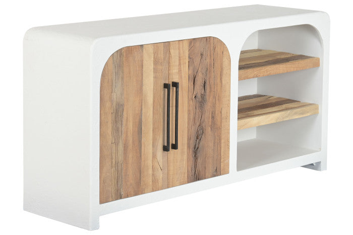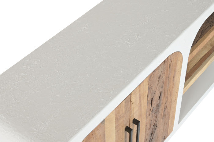 Елегантна смесица от естествена текстура и градски стил. Този минималистичен бюфет се отличава с топла рециклирана дървесина, хладни бетонни акценти и многофункционално място за съхранение – идеален за изискан, съвременен интериор.