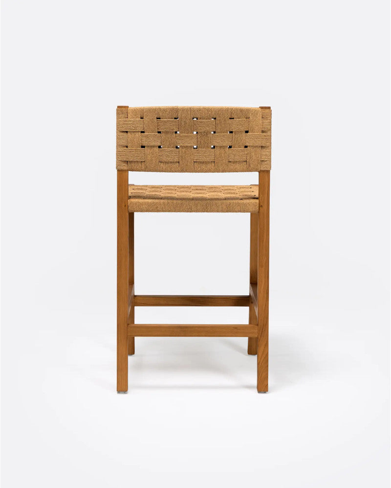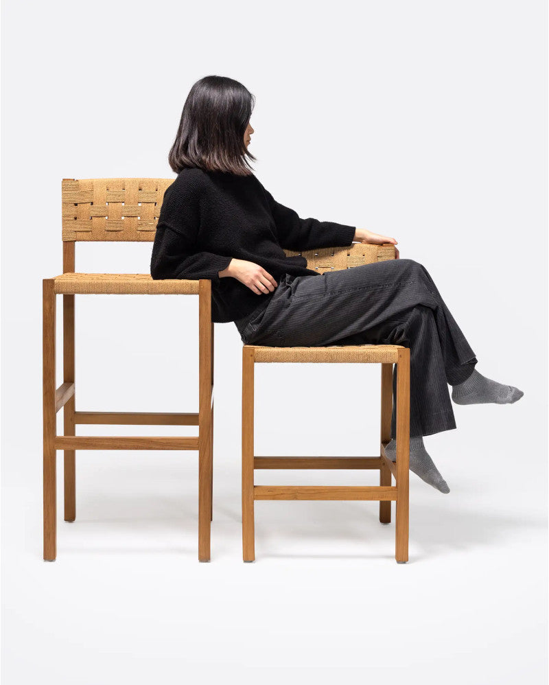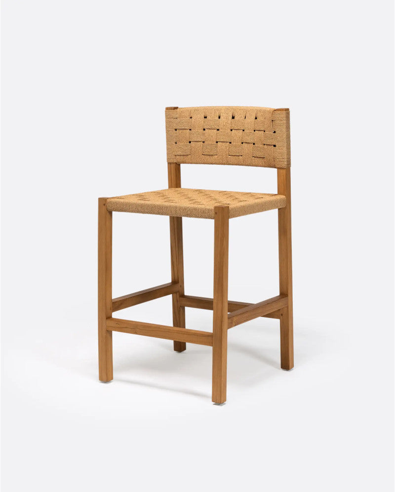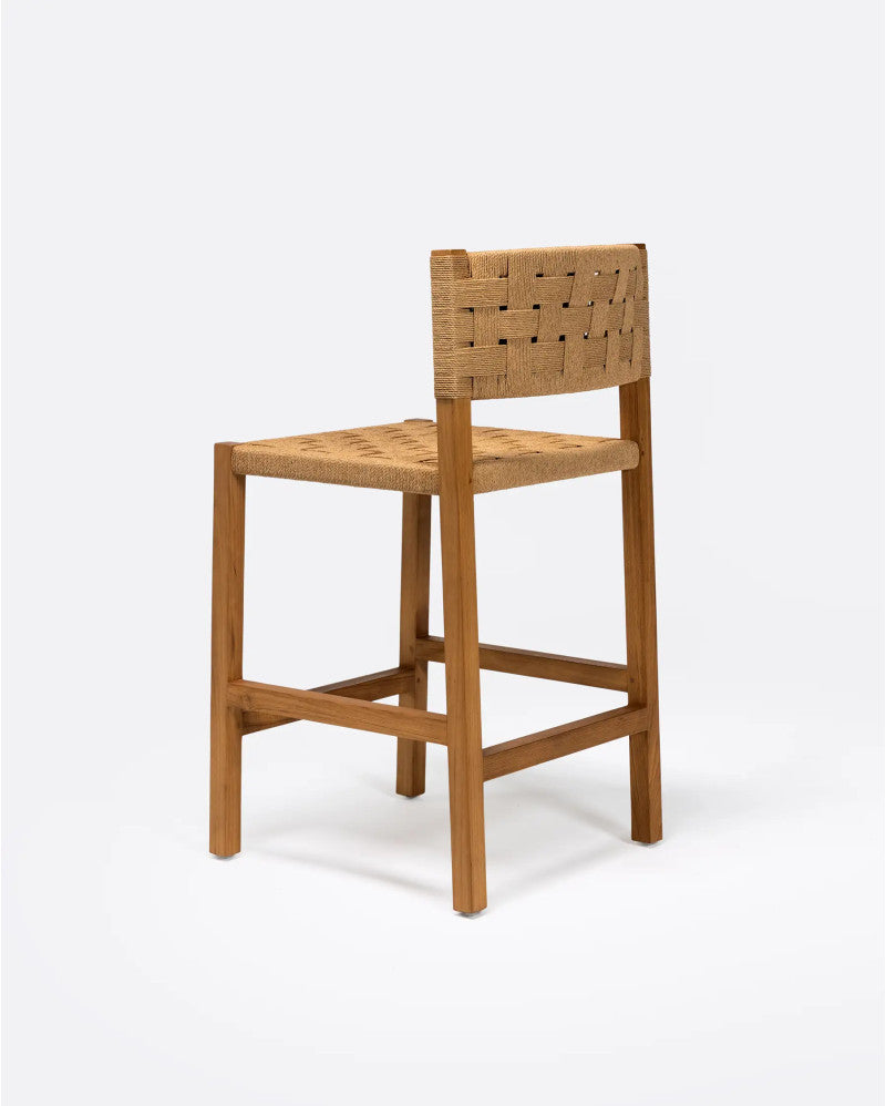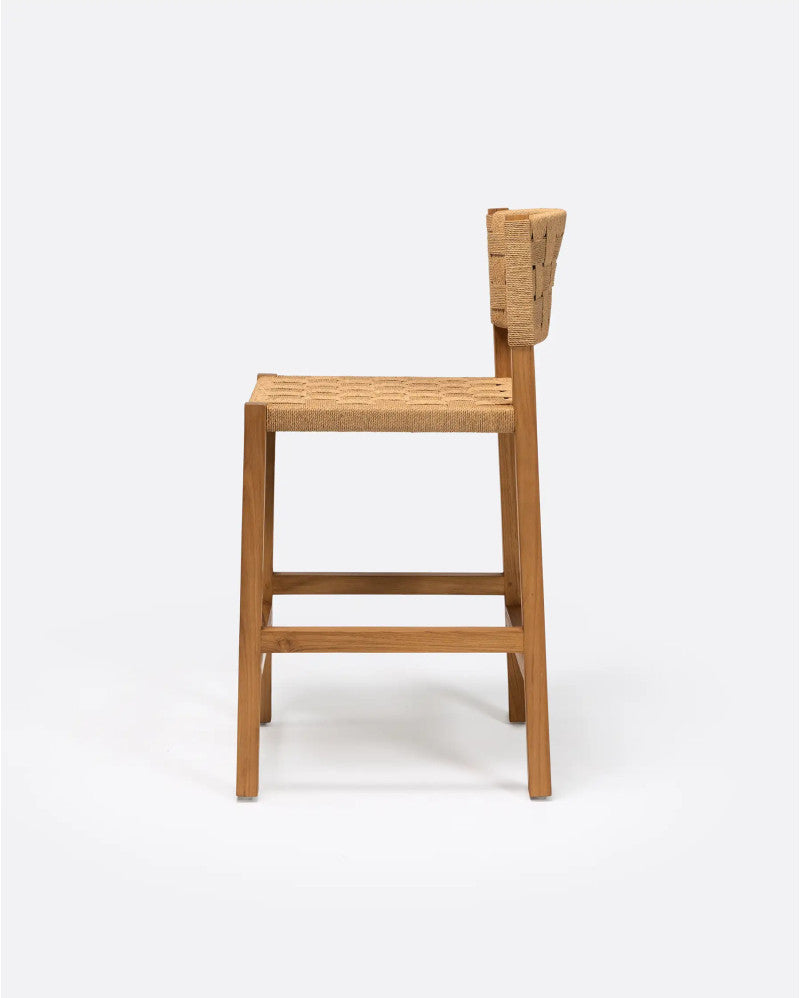 - Табуретка, изработена от естествено рециклирано тиково дърво и въже, с рустик стил и гладко покритие. Ще ви хареса широката и мека седалка от естествено сплетено въже, която в комбинация с рециклираното тиково дърво създава красив минималистичен визуален ефект. Облегалката от сплетено въже го прави особено удобна. Принадлежи към колекцията ROCA, която се откроява с характерното си сплитане, ръчно изработено от нашите експерти майстори. Екологичното сплитане от хартиено въже, заедно с естествената структура от рециклирано тиково дърво, възстановена от стари изоставени сгради в Ява, правят продуктите на ROCA перфектен съюзник за тези, които обичат устойчивия дизайн. Висока табуретка, идеална за удобно седене на високи маси или кухненски/барски тип.