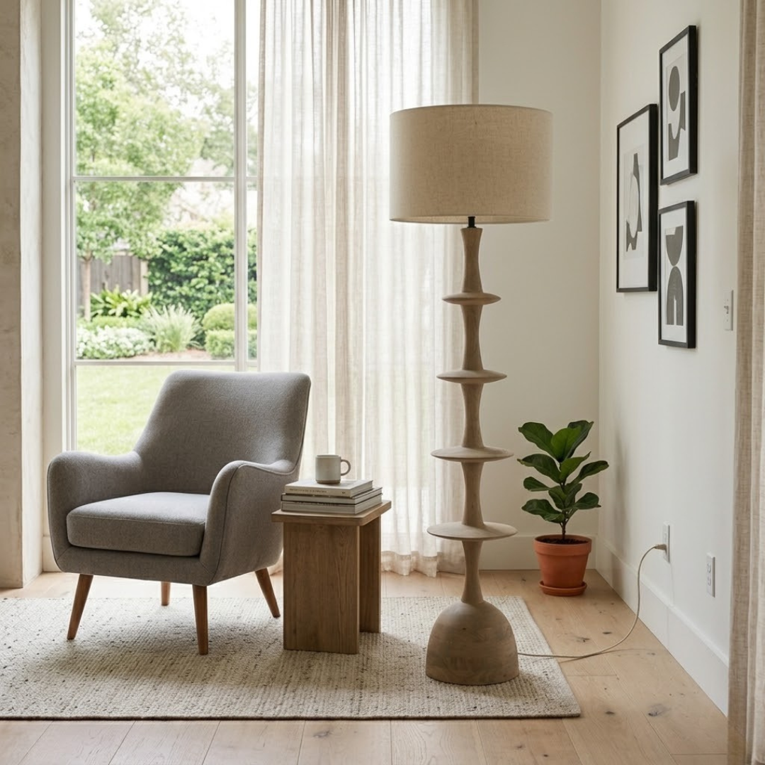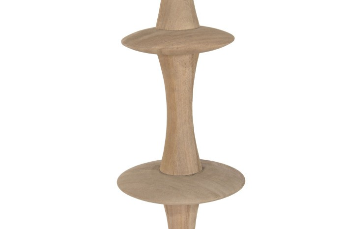 Подобрете жилищното си пространство с тази впечатляваща подова лампа, перфектна комбинация от органична артистичност и функционален дизайн. Изработена от масивна мангова дървесина и увенчана с висококачествен ленен абажур, тази лампа служи едновременно като изтънчен източник на светлина и скулптурно изявление. Естественият завършек поддържа земните тонове на дървото и тъканта, което я прави универсално допълнение към интериори в стил сканди, бохо шик, джапанди или модерен рустик. Висока 169 см, тази лампа привлича вниманието, без да претоварва декора ви, което я прави идеален избор за празни ъгли или до леглото.