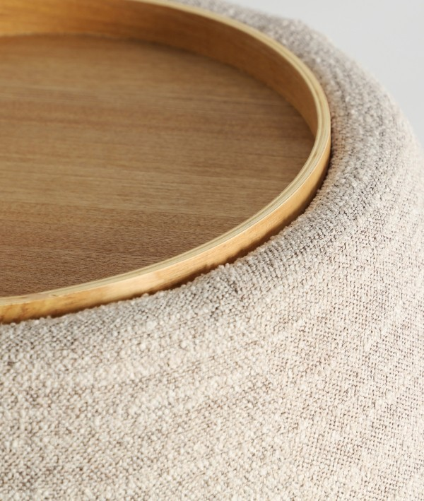 Страничната маса Sils от KODU се откроява със своите меки обеми и скулптурно присъствие. Изработена от светлокафяв MDF и комбинирана с бежов полиестер, тя внася текстура и спокойствие в пространството. Идеална е като поддържащ елемент в жилищни помещения, хотелиерски среди или проекти, където дизайнът се изразява чрез органични форми и естествени материали.