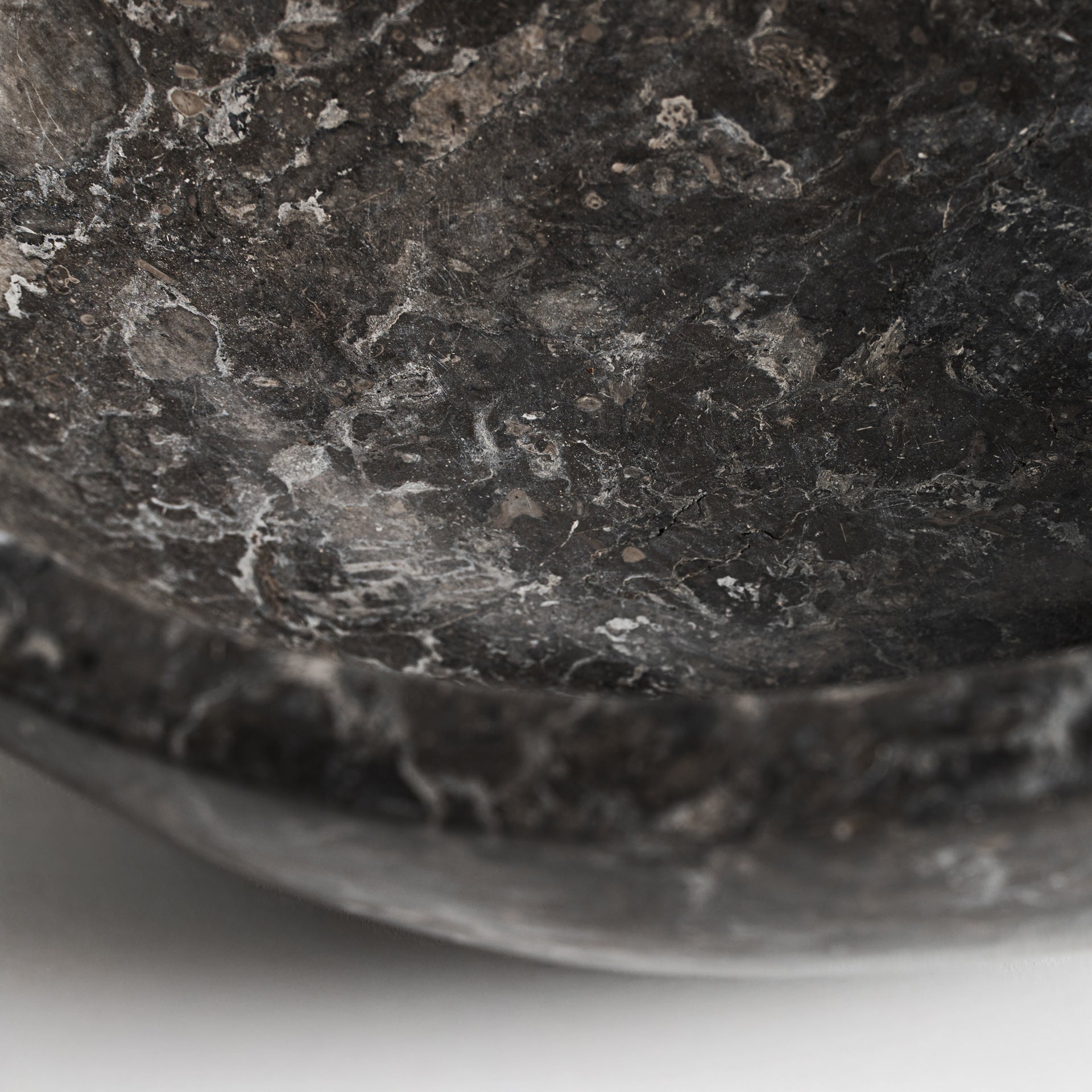 Скулптурна мивка, издълбана от естествен сив мрамор, съчетаваща съвременни линии с вечна елегантност. Идеална за луксозни бани, бутикови хотели и интериори, вдъхновени от спа центрове.