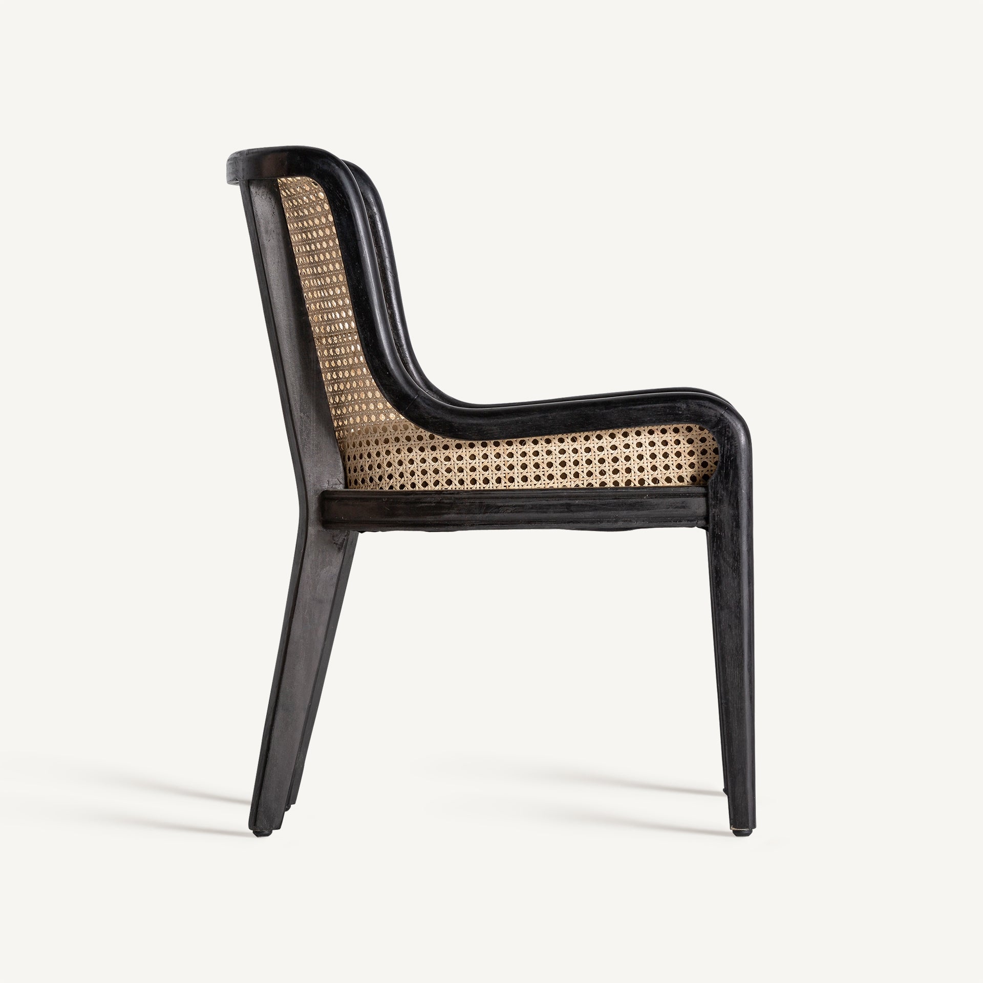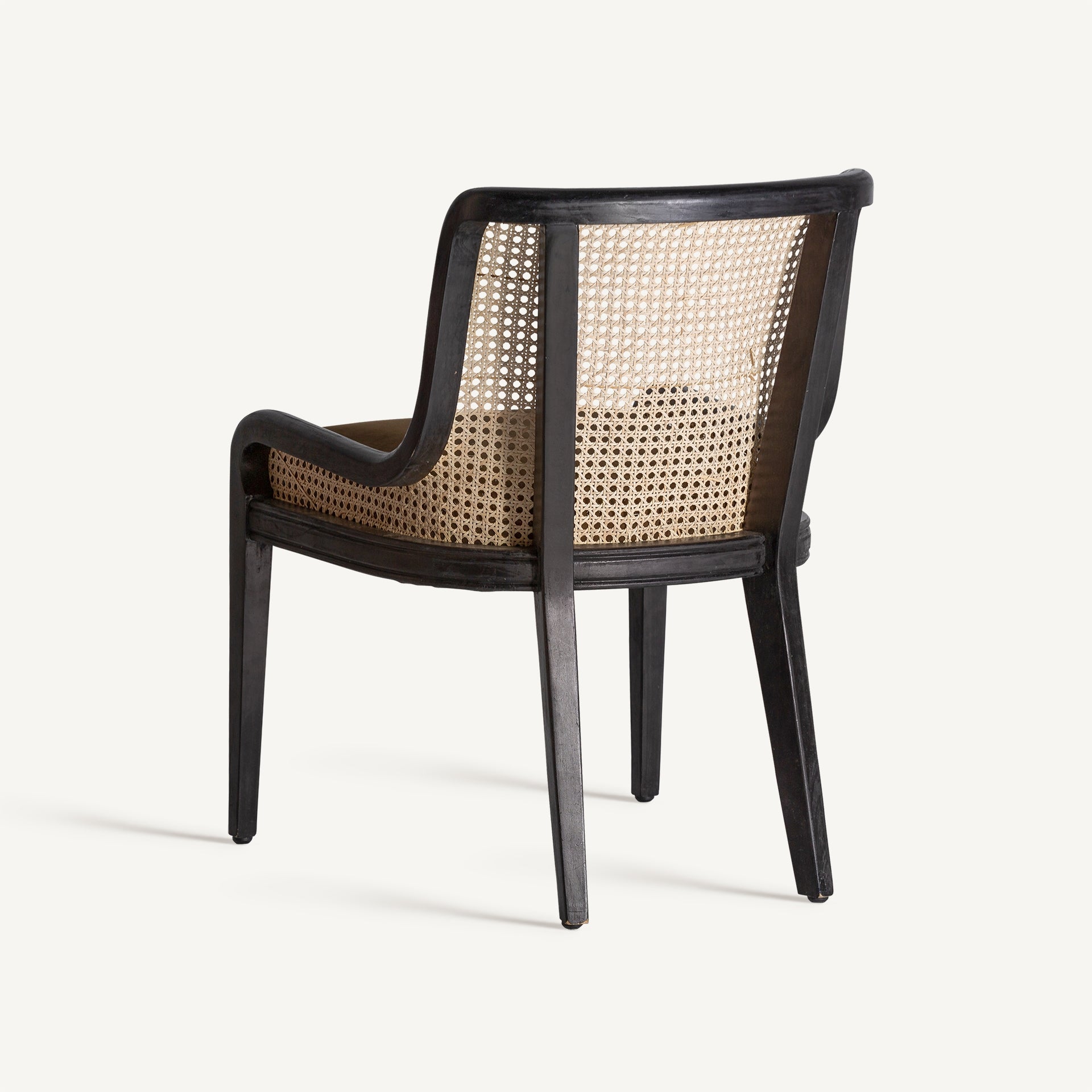 Стол Велбург, колониален стил, изработен от ратан в кафяво, комбиниран с черно каучуково дърво и камилски кадифе.