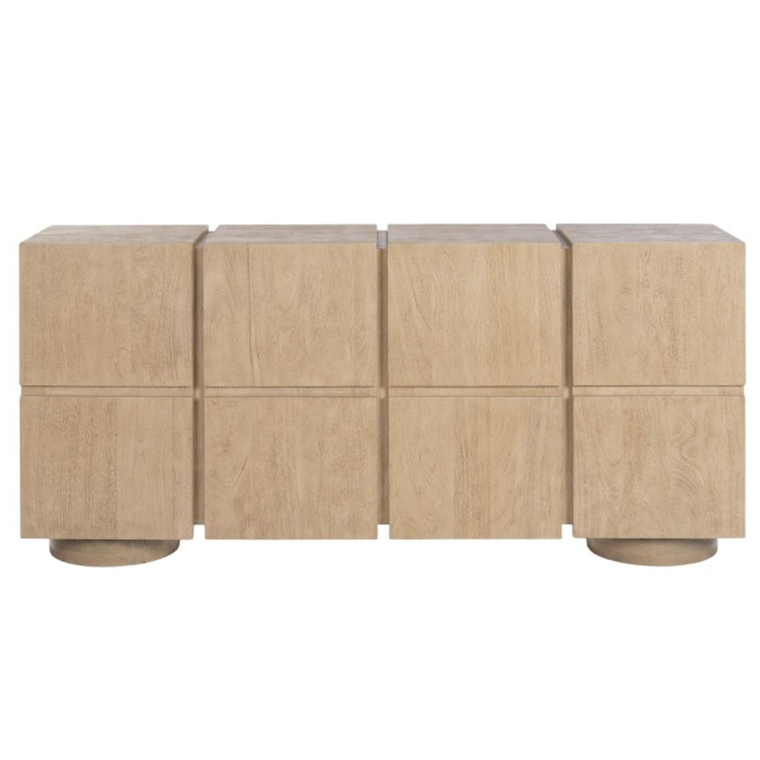 Elevate your interior with a handcrafted mango wood buffet featuring clean lines, natural grain patterns, and modern minimalist design. Perfect for stylish storage in contemporary living or dining spaces.