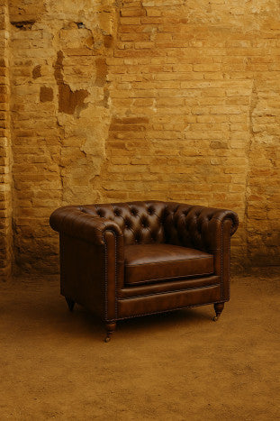 CAPITON LEATHER ARMCHAIR DARK BROWN