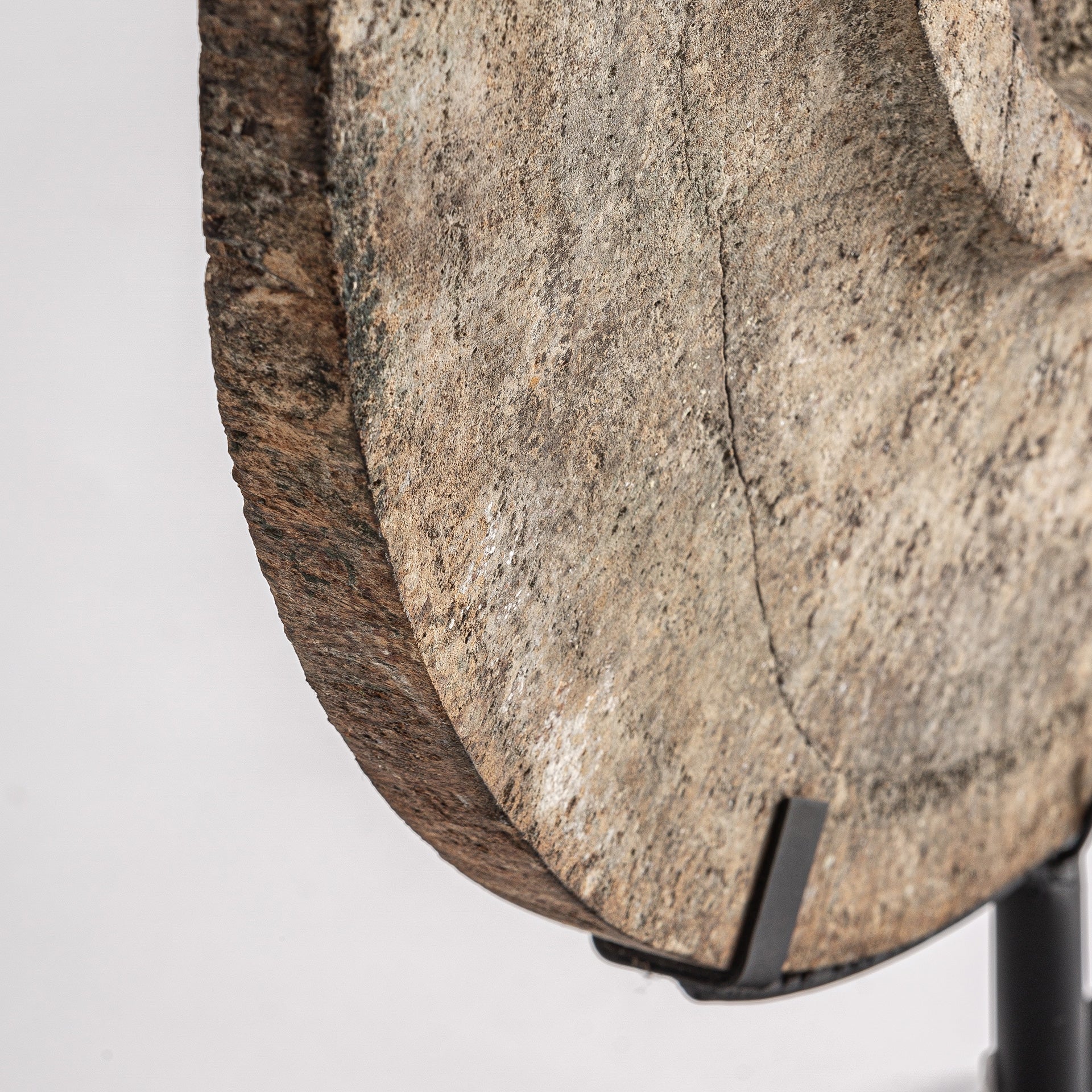 Decorative figure, style ethnic, made of suar wood in brown tones, combined with black iron. Product detachable.