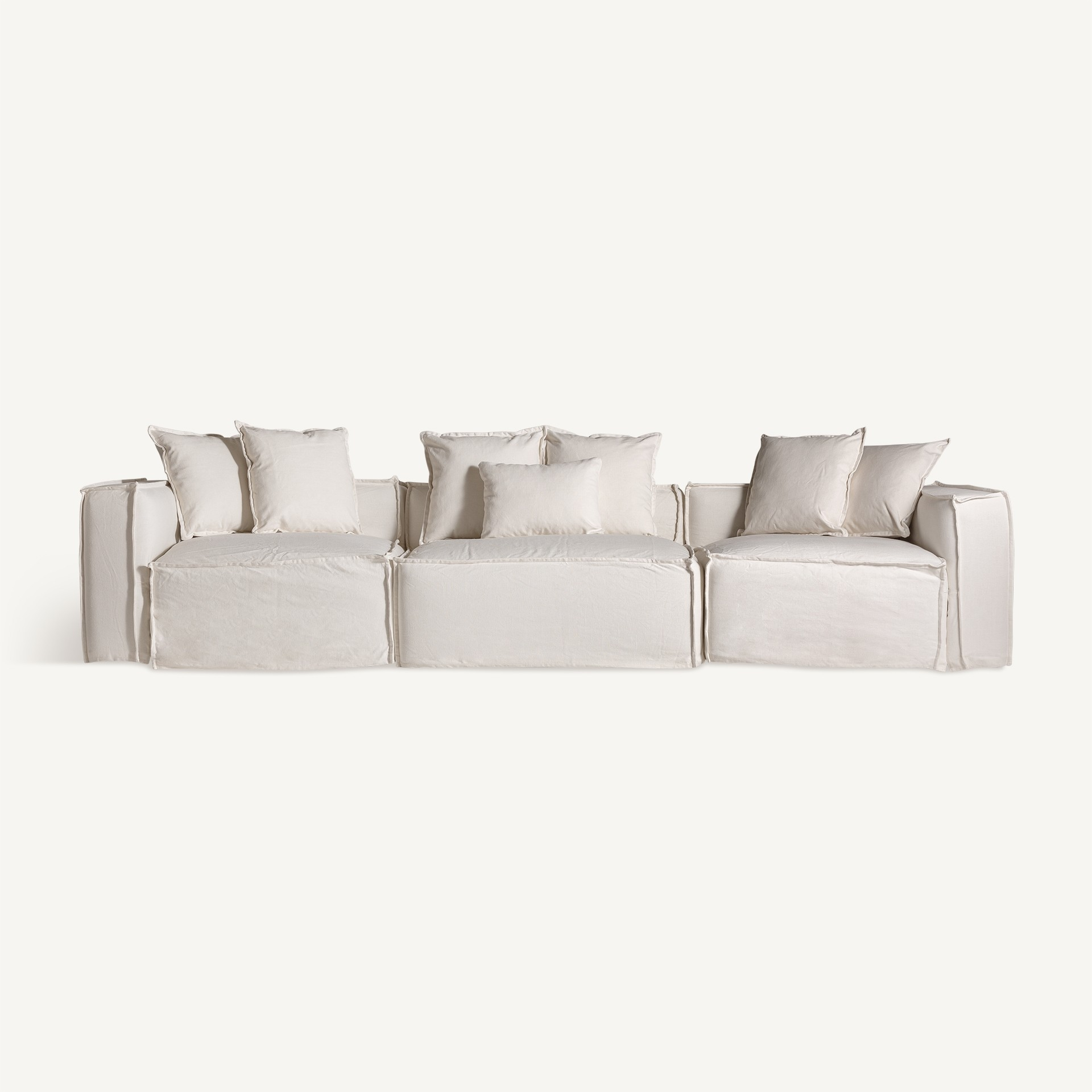 The IZQUIERDA VIROLLE SOFA MODULE features a refined white linen upholstery with a smooth finish that adds a touch of elegance and balance to any living space. Its premium foam and cotton filling provide exceptional comfort and support, making it ideal for extended relaxation. Designed to seamlessly integrate into modular arrangements, this piece combines style with practicality for a sophisticated seating solution.