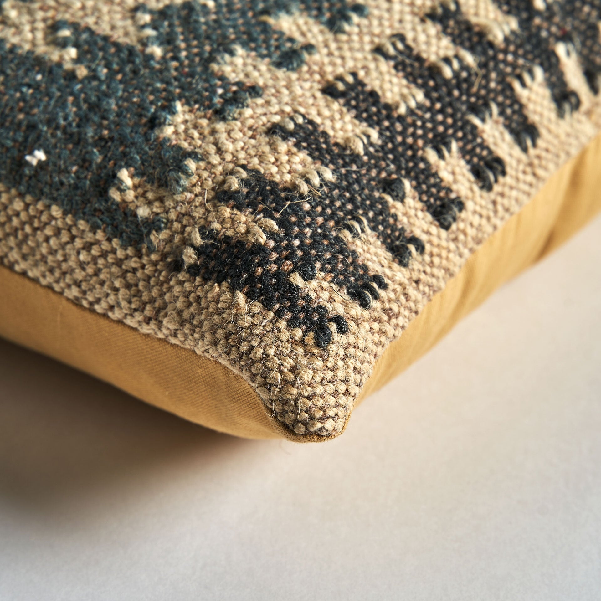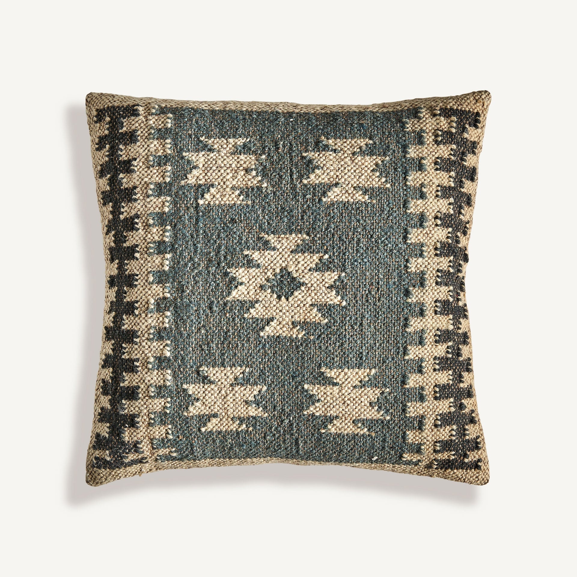 This Keith cushion, in kilim blue tones, is made of jute with a removable design. A piece by VICAL that brings chromatic freshness and vintage style.