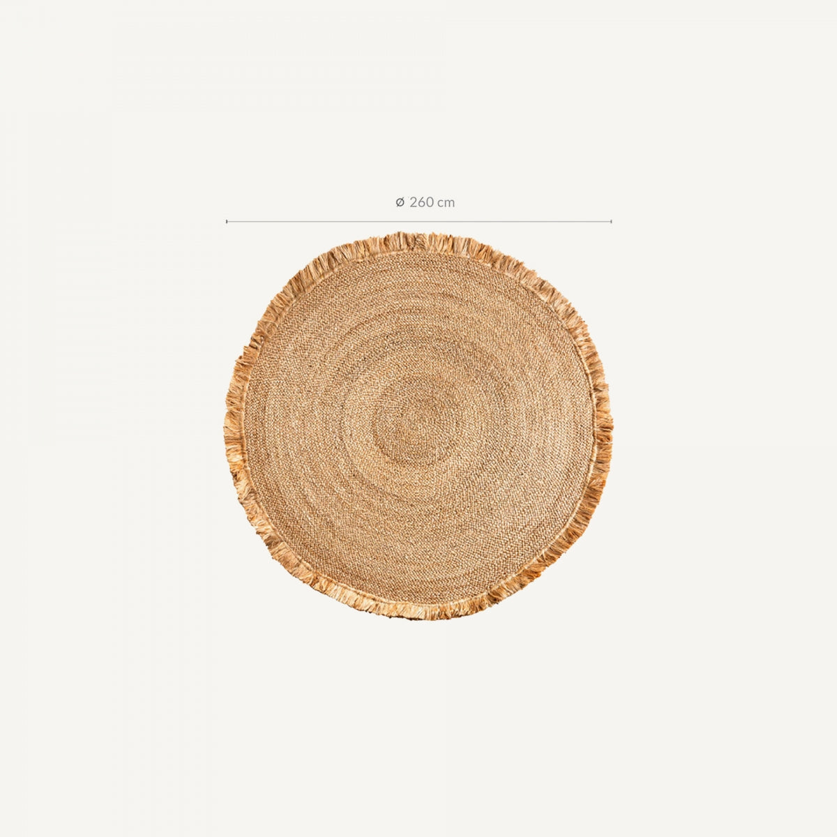 Carpet round Kisai, style colonial, made of jute in sand with a natural finish.