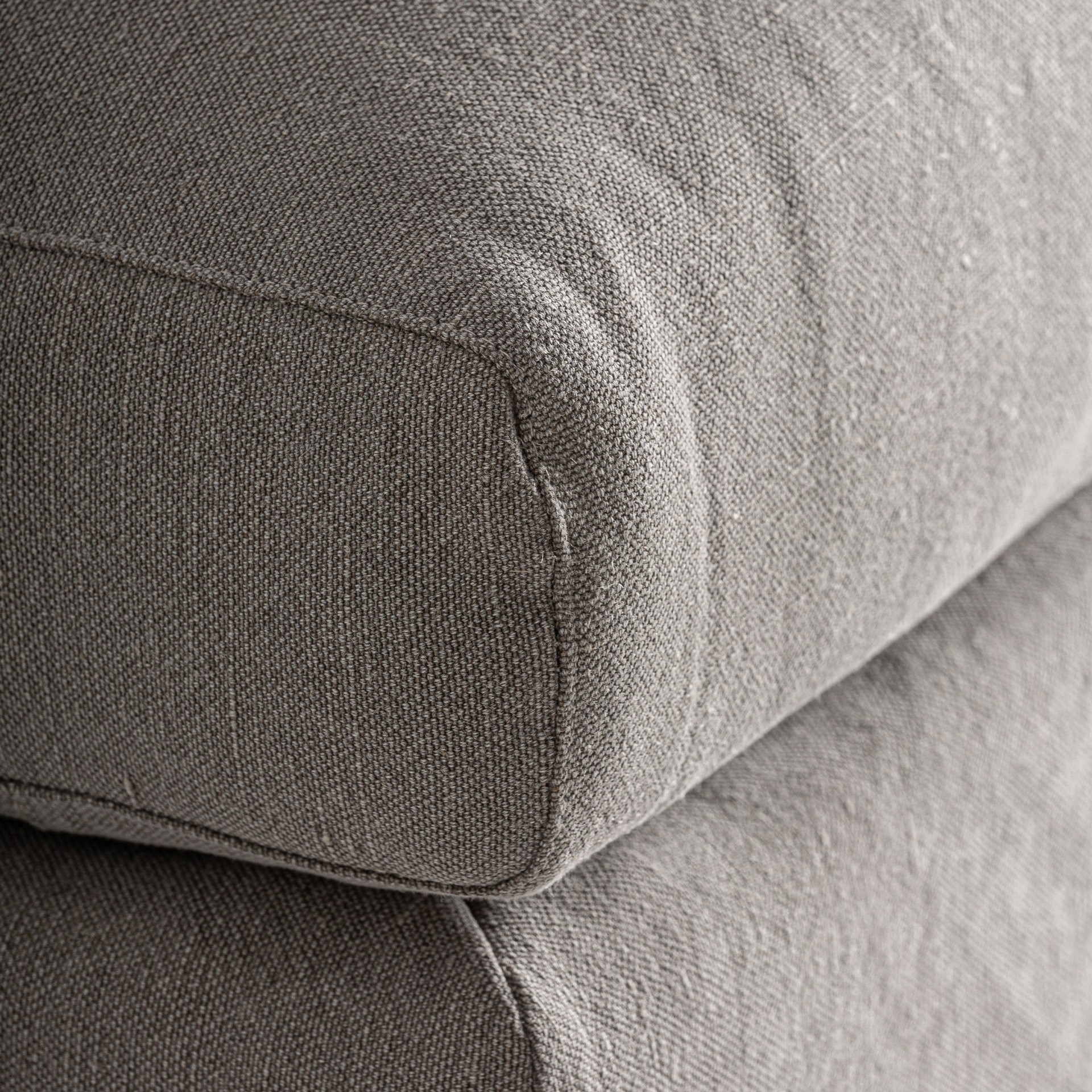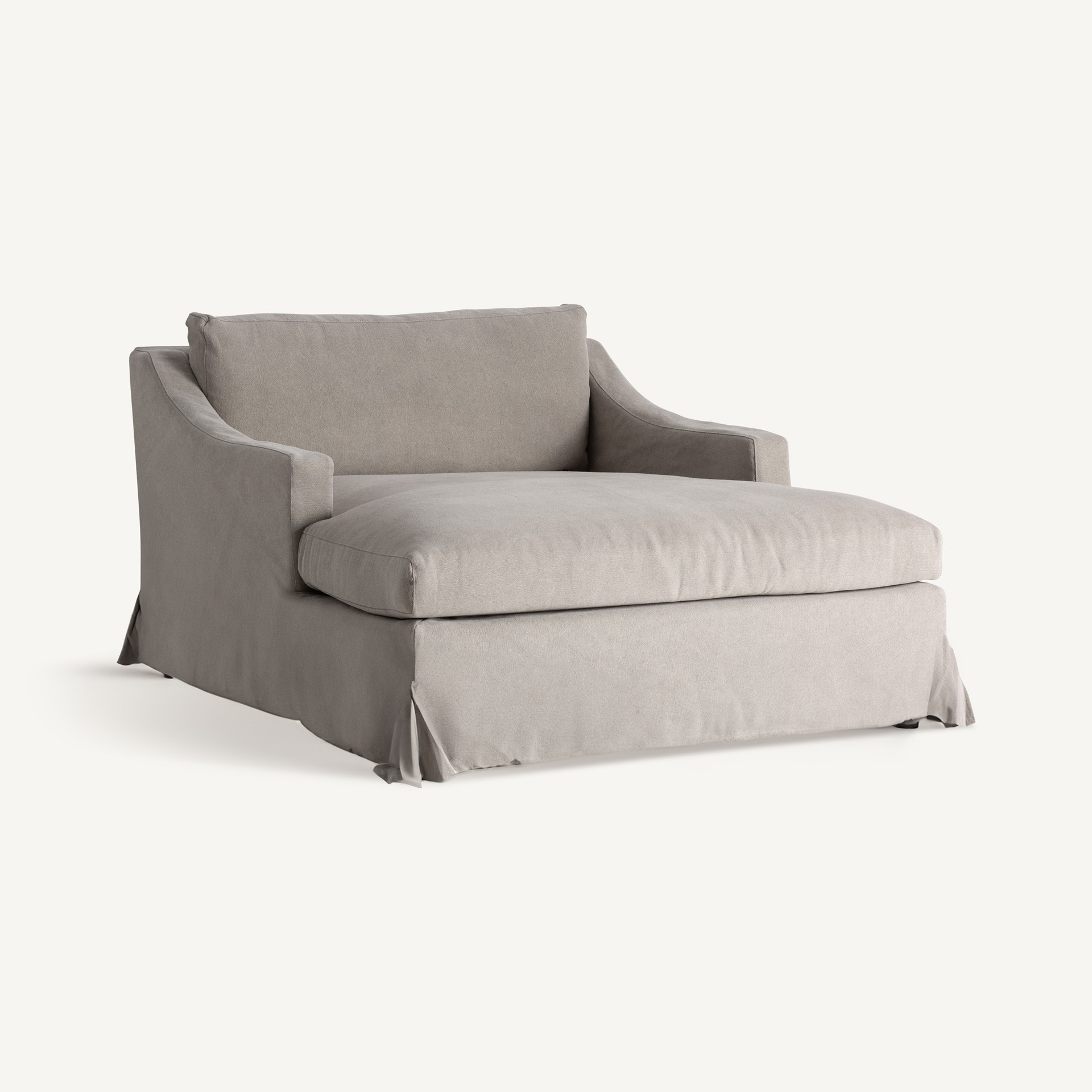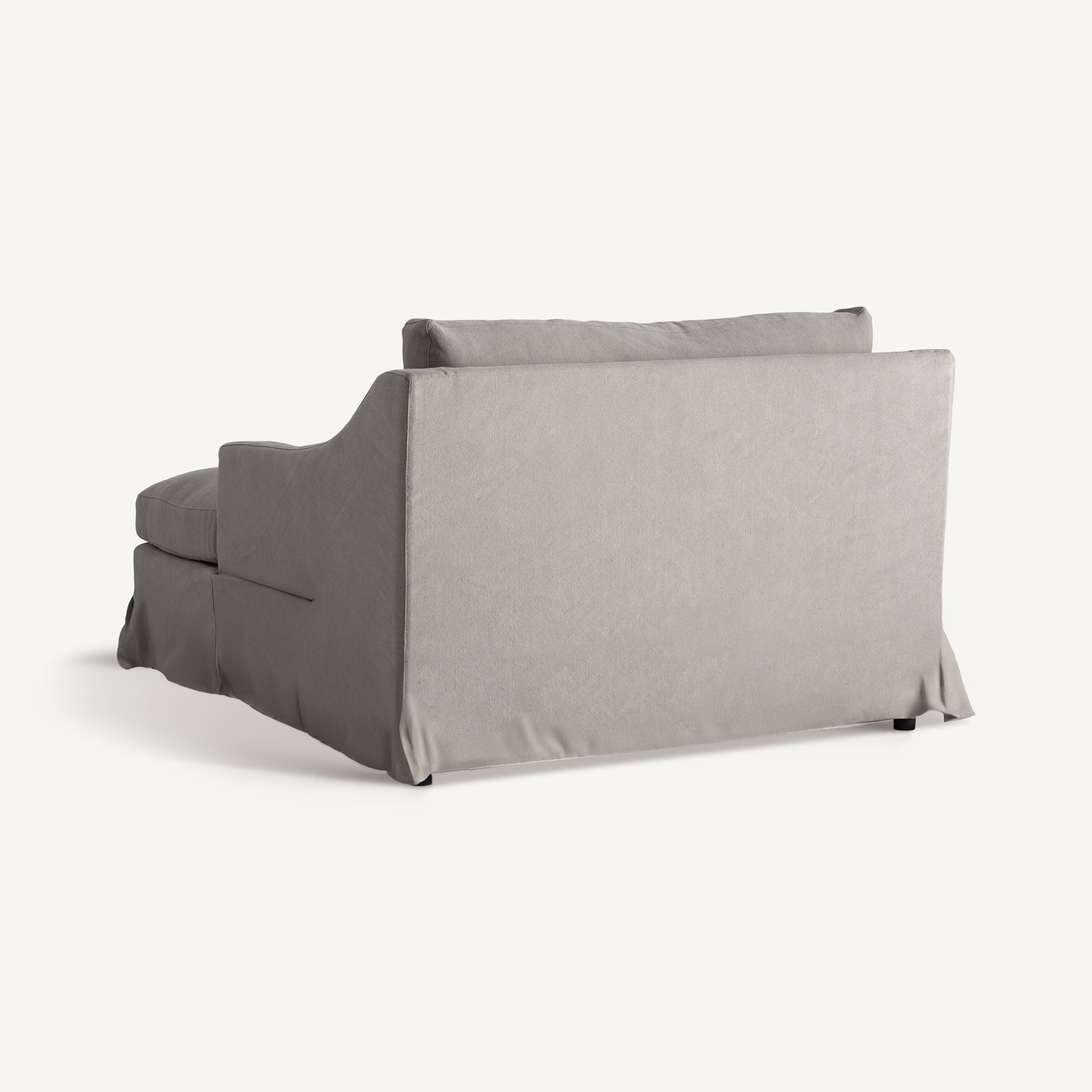 Contemporary in style, the Arsac chaise longue is crafted from soft grey linen, blended with cotton and high-resilience foam for lasting comfort. Its generous proportions — 130 cm wide, 172 cm deep, and 90 cm high — offer a spacious and inviting seat. The design is fully detachable and features removable components, ensuring both practicality and ease of maintenance. A versatile piece that complements modern interiors with understated elegance.