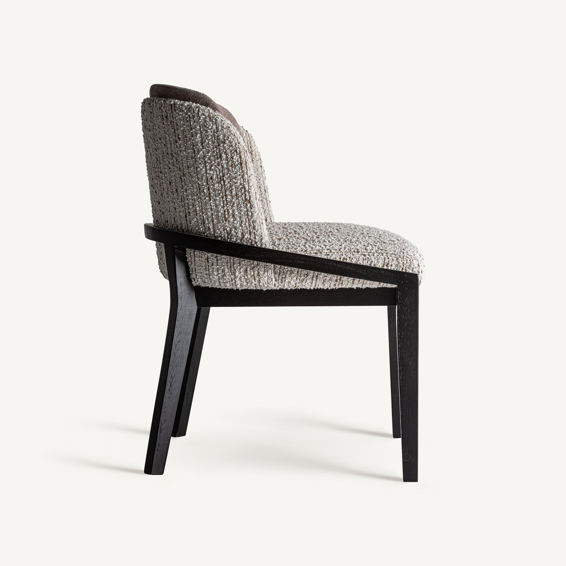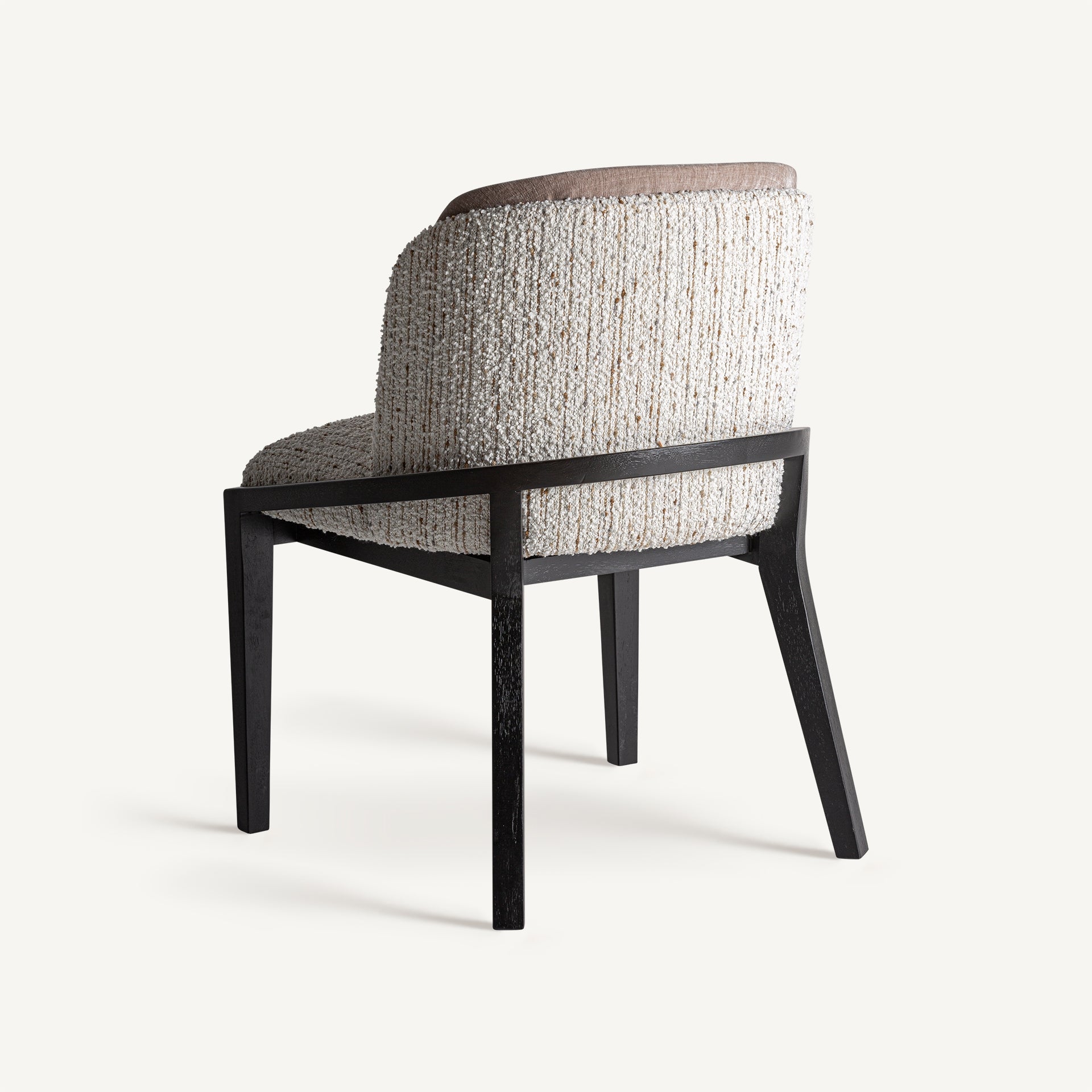 VICAL reinterprets art deco with the Malters chair. Made of black rubberwood, brown cotton, and foam, this piece combines sobriety and texture in an elegant and functional design. Ideal for characterful dining rooms.