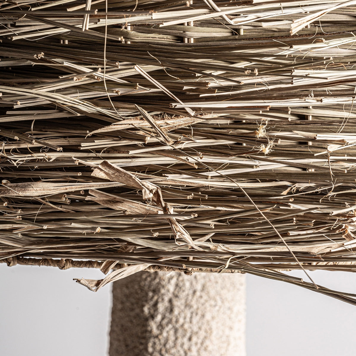 Floor lamp Niland, style rustic, made of resin in cream with a rough finish, combined with brown seagrass. Product detachable.