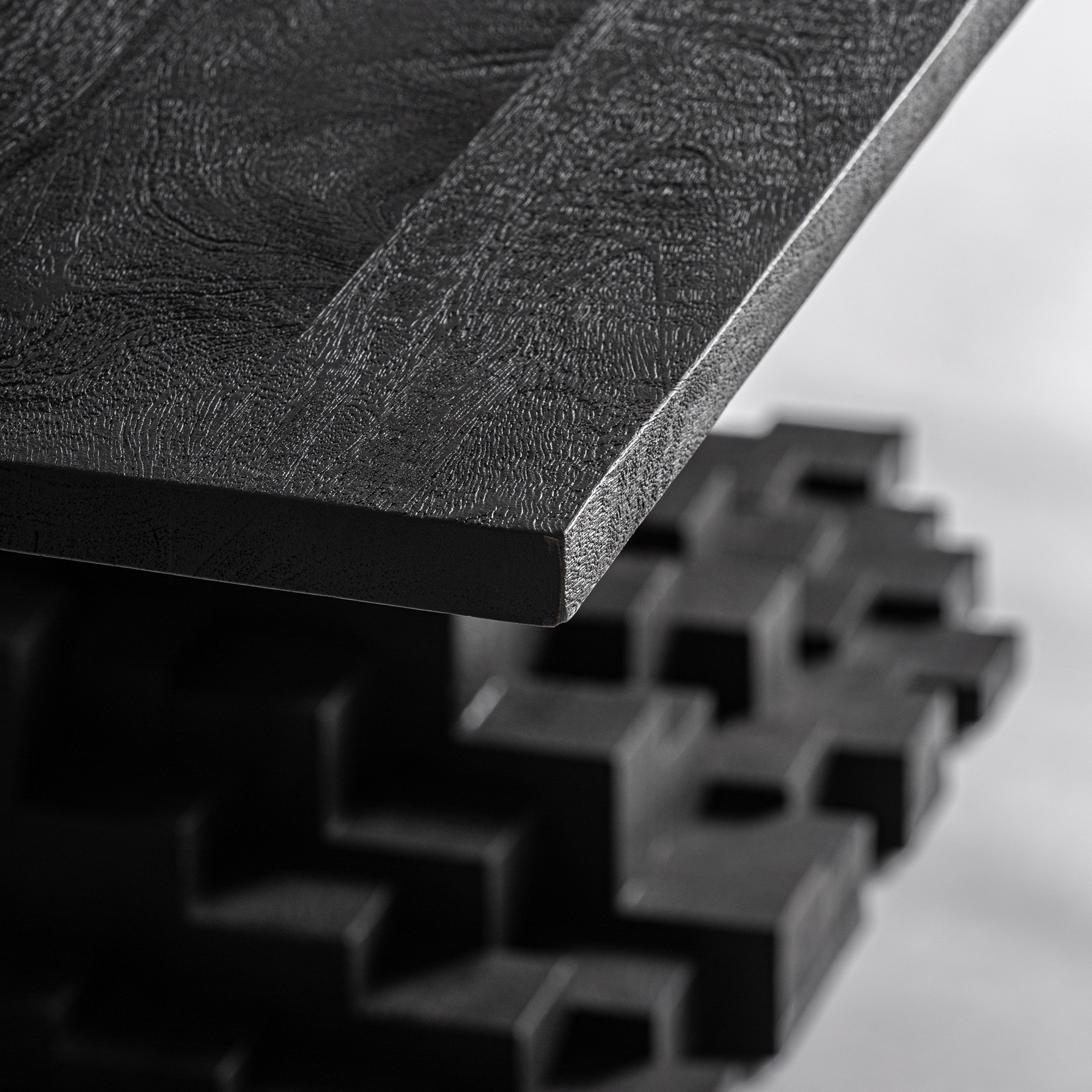 The PÈTRIA Dining Table by VICALDESIGN rises like a basalt pillar: robust and solemn, with a wide surface supported by a single central column that evokes the strength of volcanic earth. Its monumental design, with pure lines and imposing geometry, transforms the dining room into a space of contemplation and timeless character.