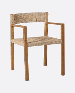 - A rustic style chair with smooth finishes, made of natural teak wood and paper rope. You will love its teak armrests, which are integrated with the legs, creating a beautiful minimalist visual effect. It belongs to the ROCA collection, which stands out for its characteristic braiding handmade by our expert craftsmen. The ecological paper rope fabric, together with the black painted teak structure, make CORA pieces a perfect ally for those who love sustainable design. An ideal chair to comfortably enjoy moments seated at the table, or as a complement to the CORA sideboard. Also available with the rope in black.