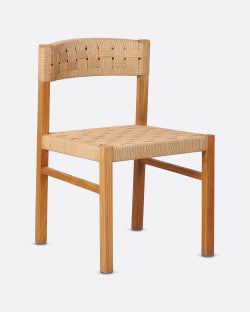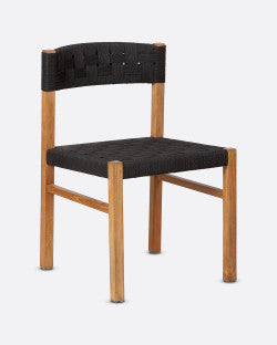 - A rustic style chair with smooth finishes, made of natural teak wood and rope. You will love its wide and soft seat and backrest area. It belongs to the ROCA collection, which stands out for its characteristic braiding handmade by our expert craftsmen. The ecological paper rope fabric, together with the natural teak structure make the ROCA pieces a perfect ally for those who love sustainable design. An ideal chair to comfortably enjoy moments seated at the table, or as a complement to the CORA sideboard. Also available with the rope in black.
