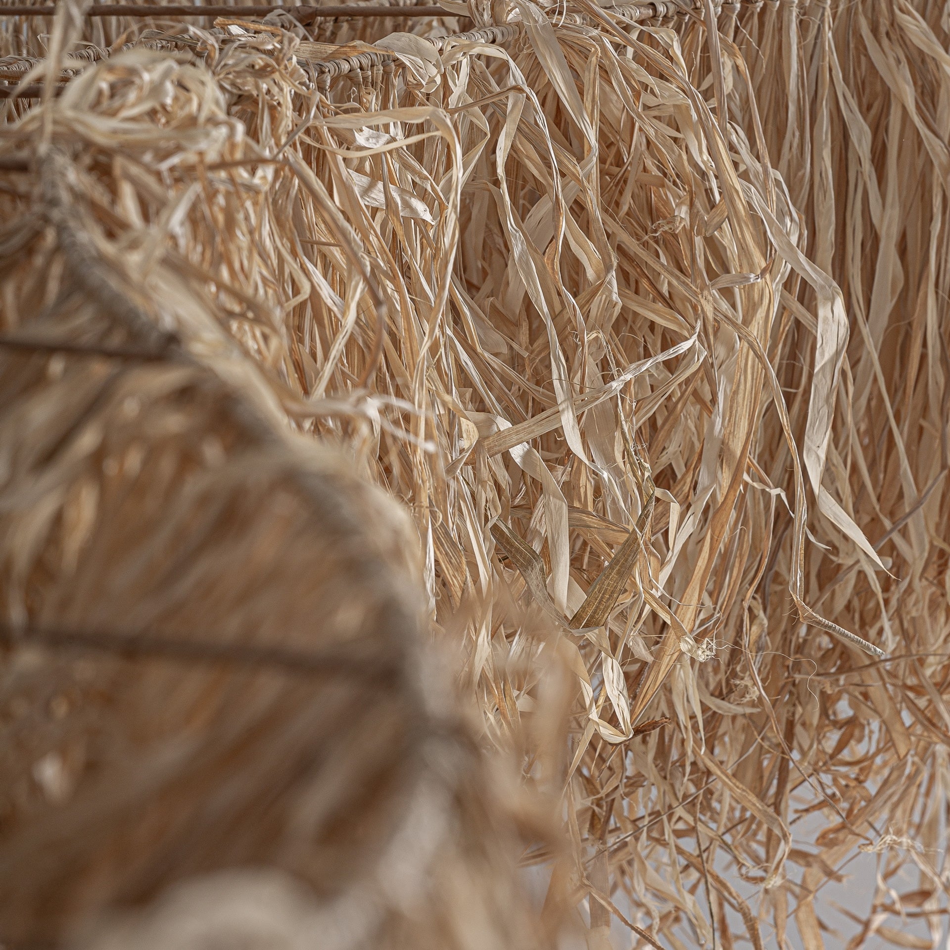Sculpture, made of raffia in brown.