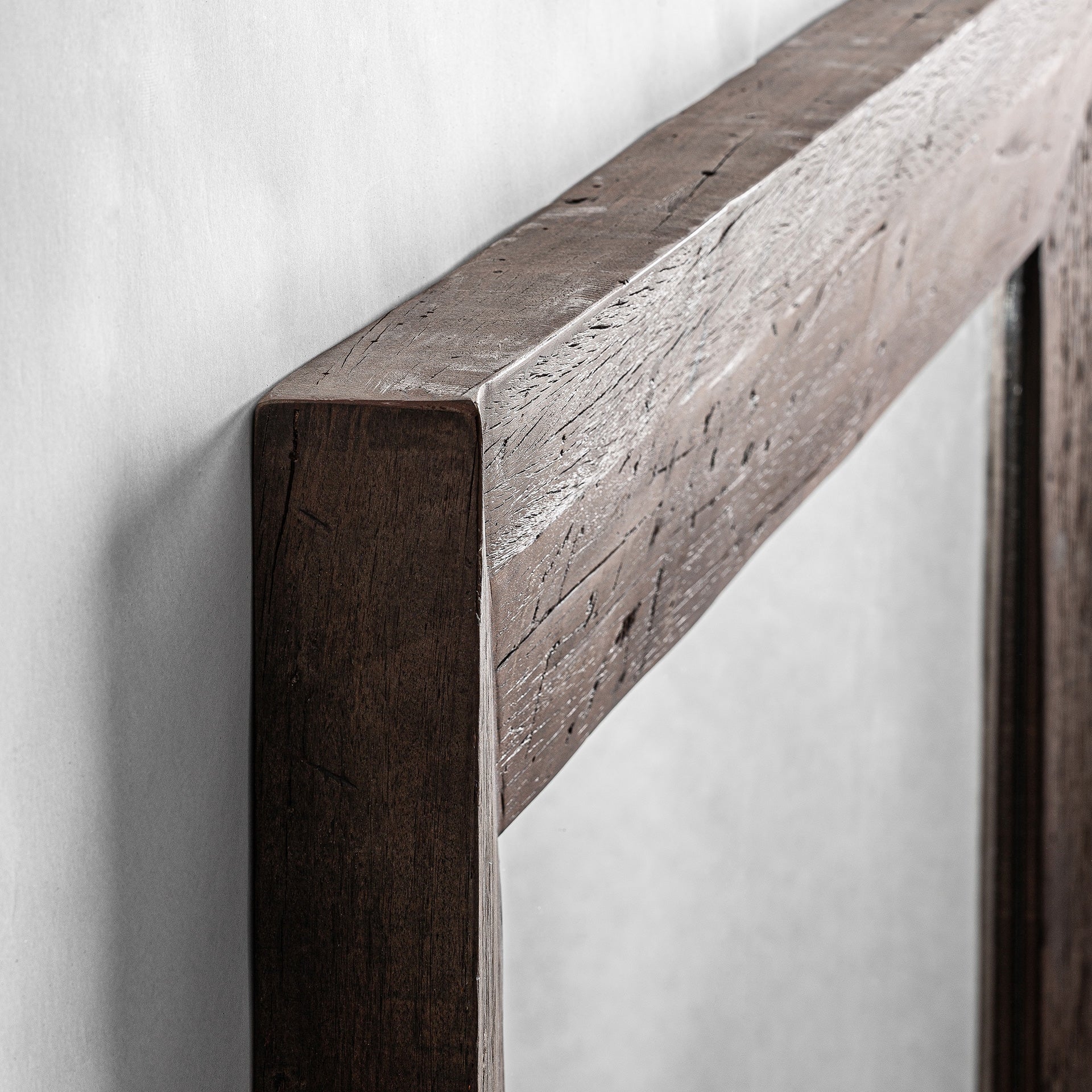 The Skorup mirror, in reclaimed brown wood and glass, stands out for its aged finish and colonial aesthetic. A creation by VICAL that brings character and authenticity.