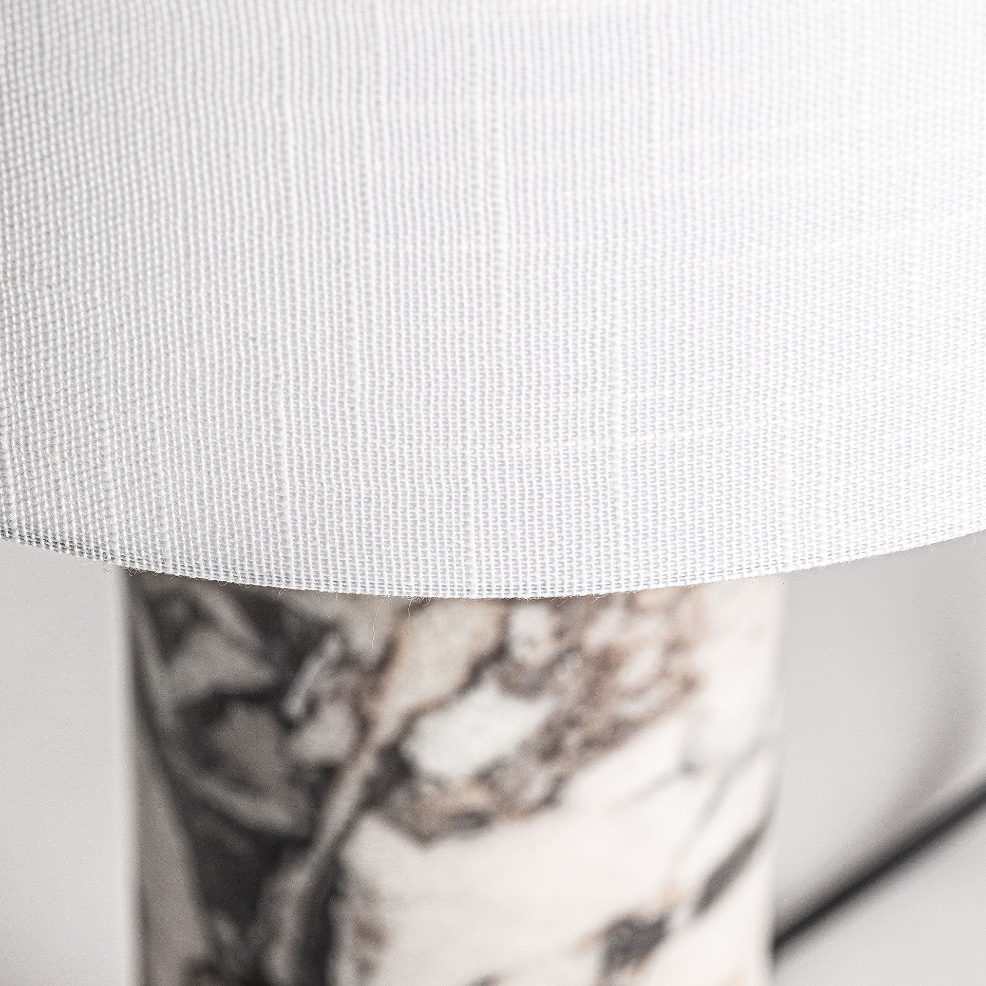 Table lamp, style art deco, made of marble in black, combined with gold iron with a bronze finish and white polyester. Product detachable.