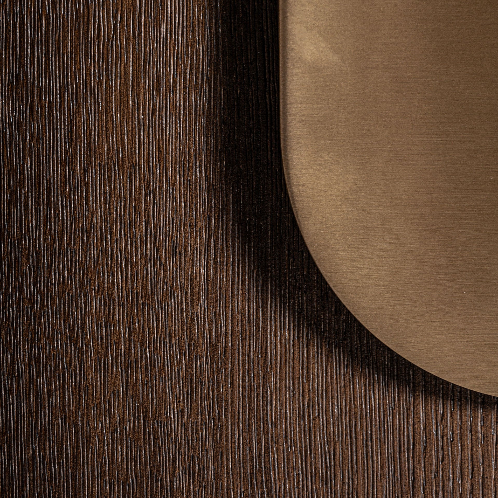 The centerpiece features a sculptural gold-toned handle, creating a striking contrast against the rich wood grain. Designed for modern interiors, this piece blends natural warmth with metallic sophistication—perfect for your home or boutique hotel