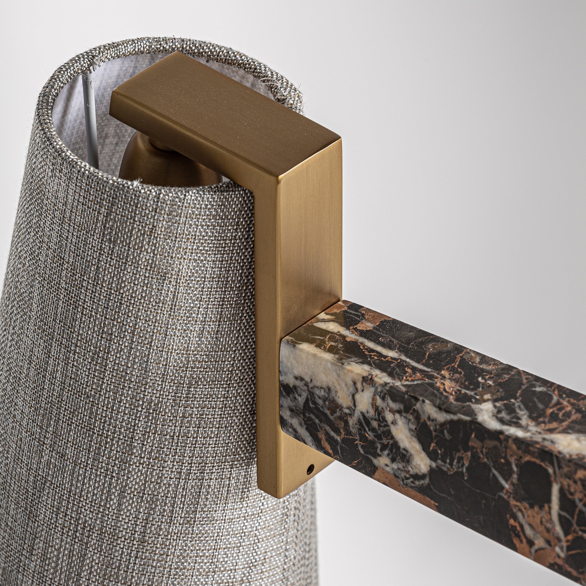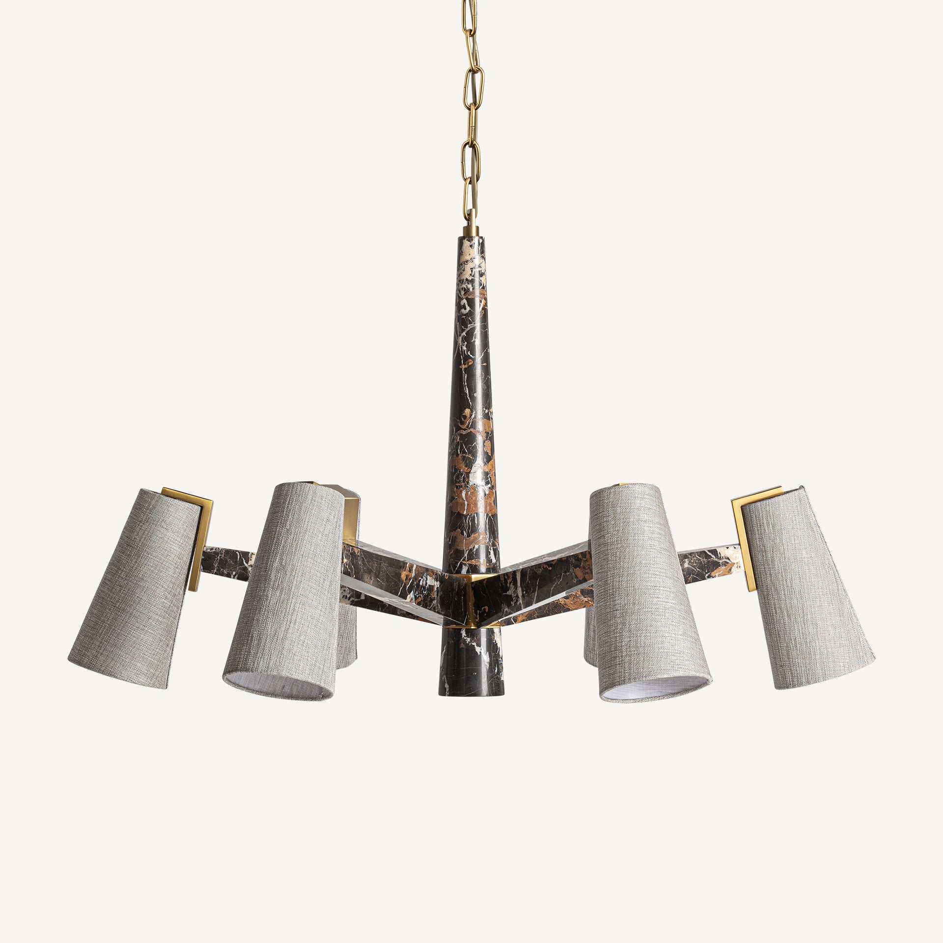 Wale ceiling lamp, style art deco, made of marble in black, combined with golden metal and off white polyester. Product detachable.